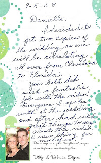 One of Billy and Rebecca’s grandparents ordered a couple more DVDs of their wedding and in the envelope was this note on the left. It was really nice and I’m really glad that everyone enjoyed their Love Story and wedding video!
